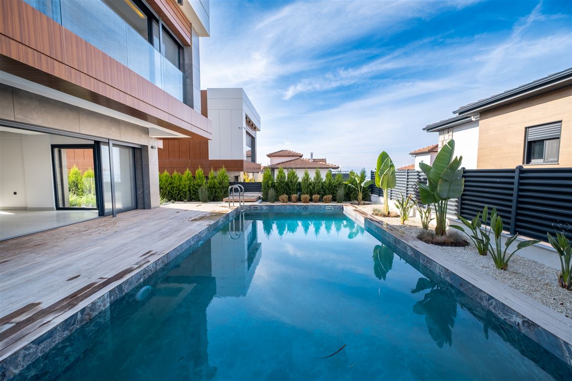 PROJE ÖZELLİKLERİ330 m² deniz manzaralı arsa 250 m² net kullanım alanı: 4+1, 4 banyo Özel yüzme havuzu, 3 araçlık otopark ve geniş teras Kendi su sistemi ile sürdürülebilir altyapı Tam yalıtımlı taş & kompozit cephe Full akıllı ev altyapısı, merkezi klima ve yüz tanımalı çelik kapı Şık lake mobilyalar, 5’li ankastre set Vitra vitrifiye ürünleri Her detayda üst düzey malzeme ve işçilik |